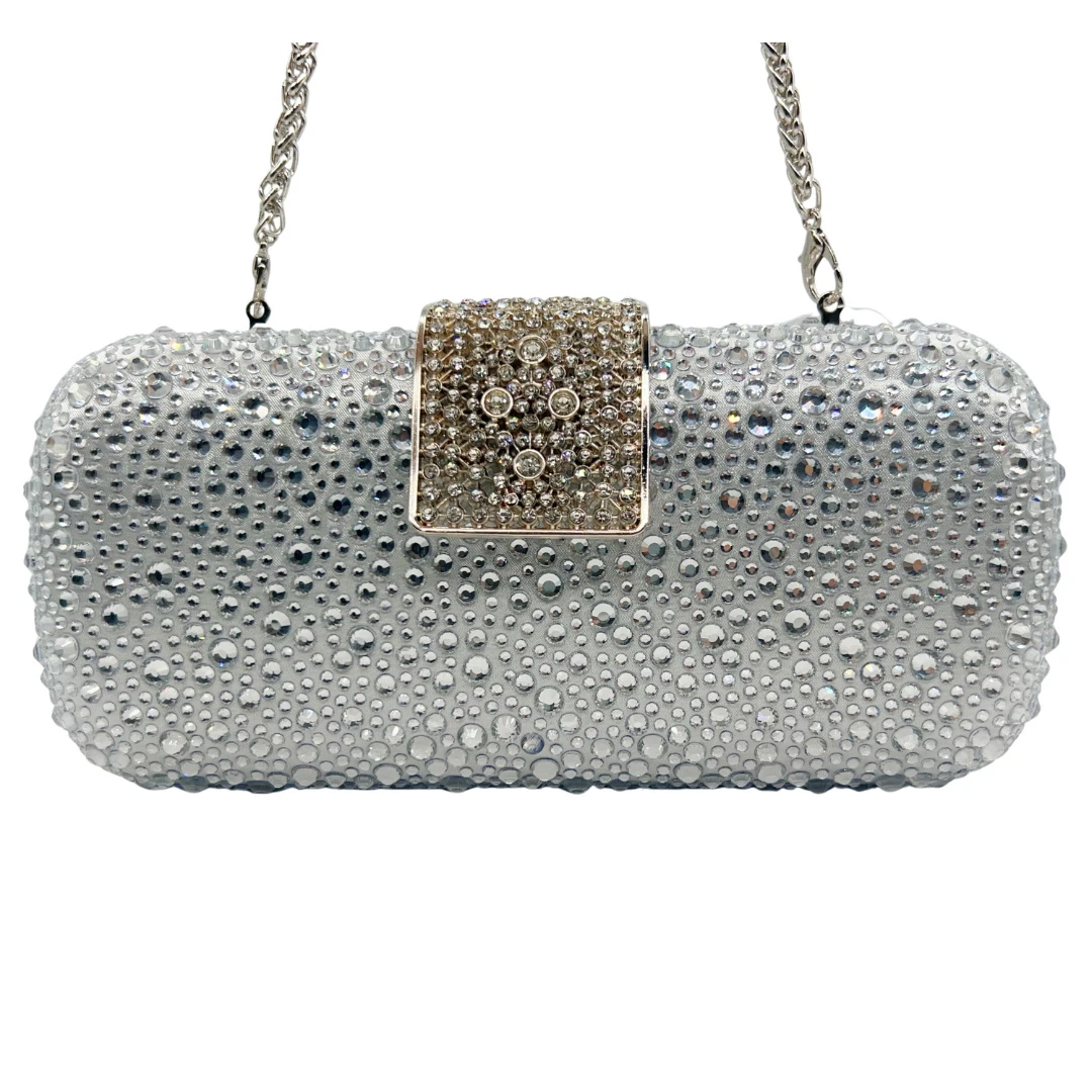 This crystal rhinestone evening clutch is designed to elevate party outfits, evening gowns, and formal looks with a refined sparkle. The diamond-studded exterior creates a luxurious appearance that stands out under evening lighting.