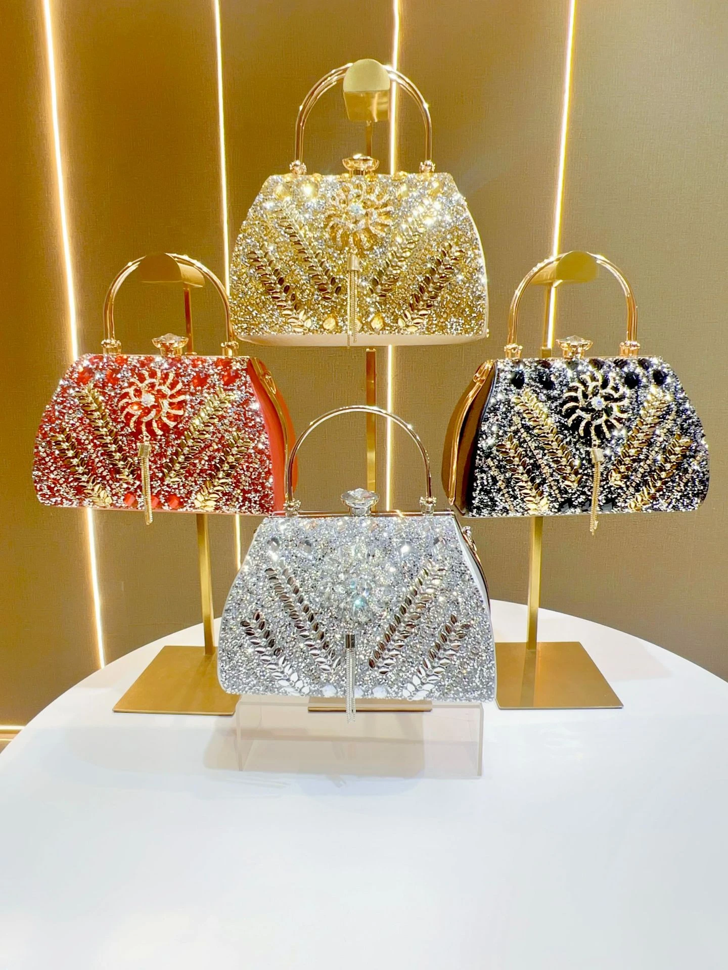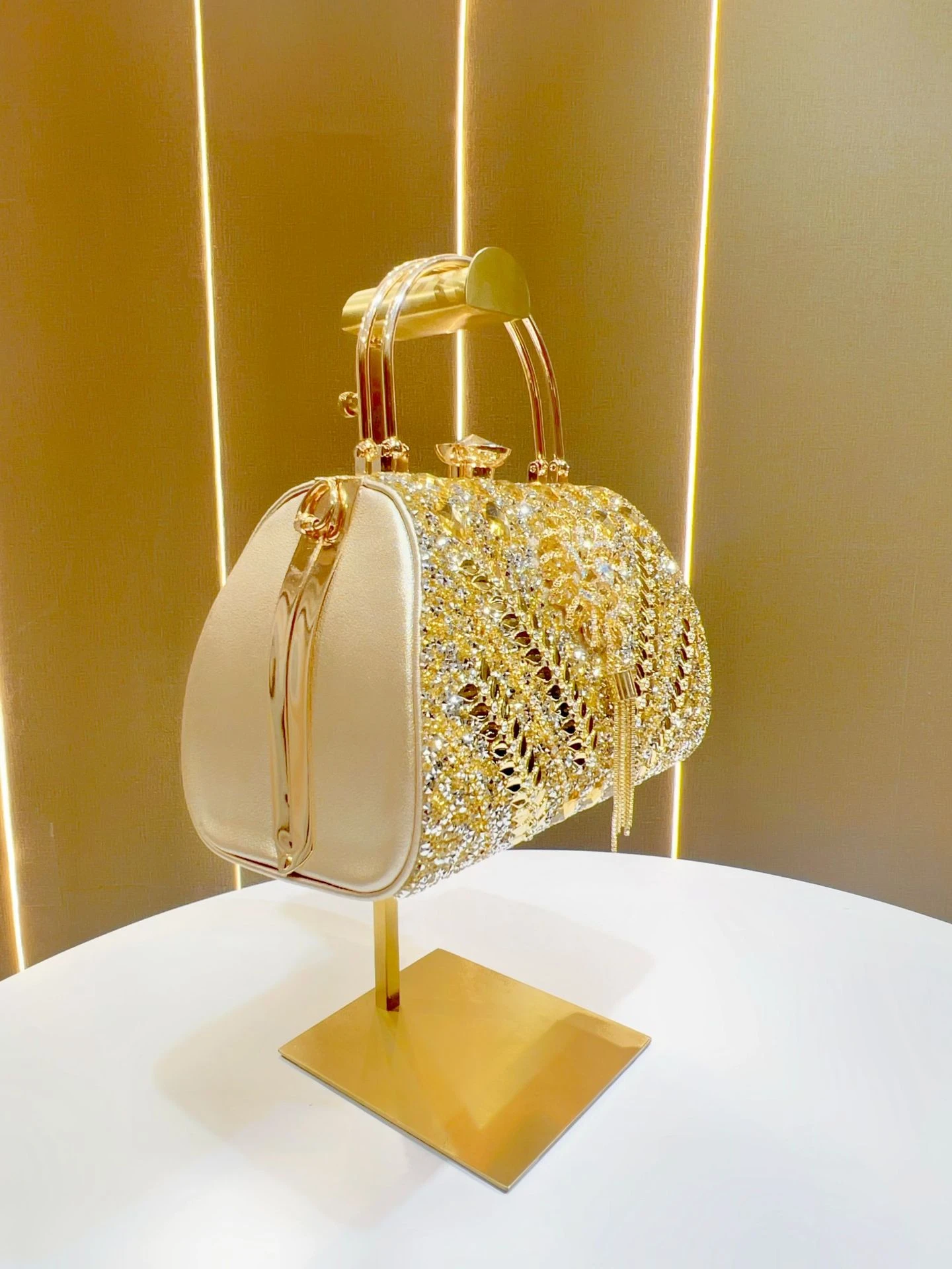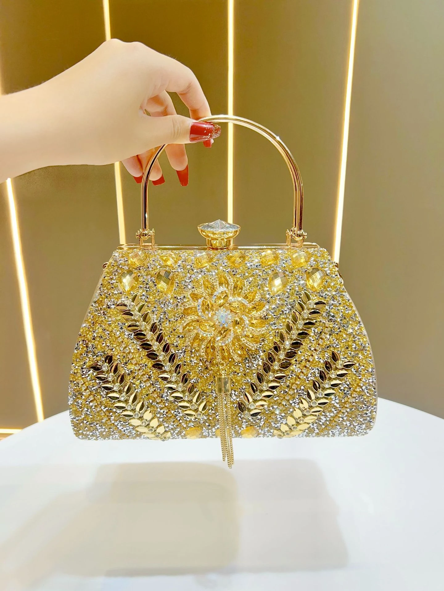 This large-capacity diamond-encrusted handbag is designed for women who want both elegance and practicality for evenings and special occasions. The decorative detailing adds a refined, high-end look suitable for social events and formal gatherings.