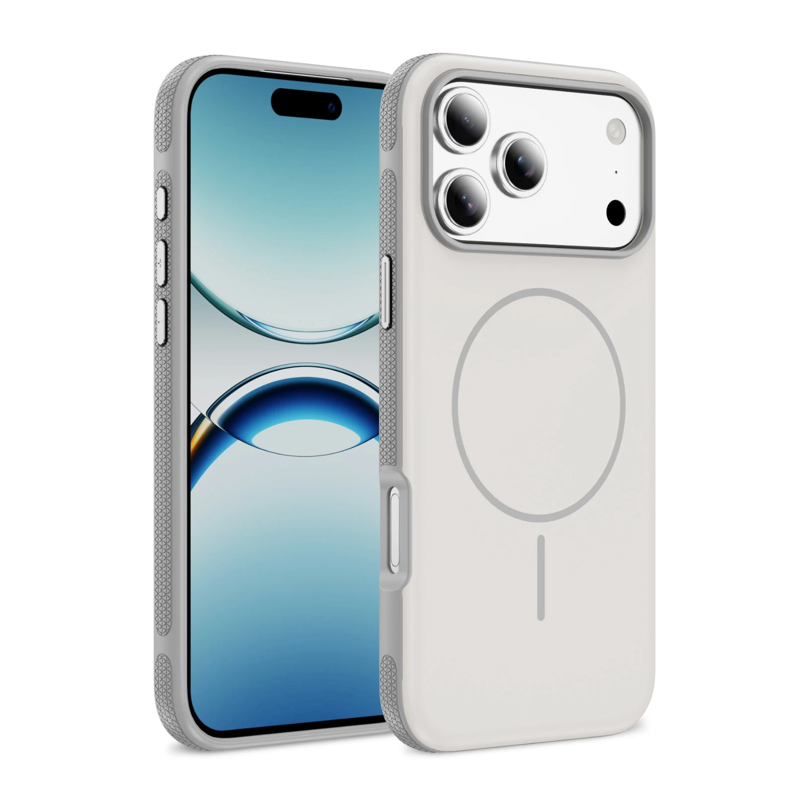 The built-in magnetic design supports convenient use with compatible magnetic accessories and wireless charging without removing the case. Its comfortable texture improves grip and handling during daily use.