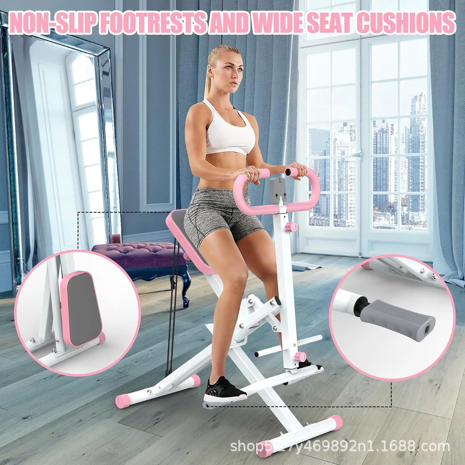 Professional multifunctional fitness device designed for comprehensive core and abdominal conditioning. This versatile trainer combines the benefits of an abdominal crunch machine with a horseback riding motion to target the upper and lower abs, obliques, glutes, and legs simultaneously.